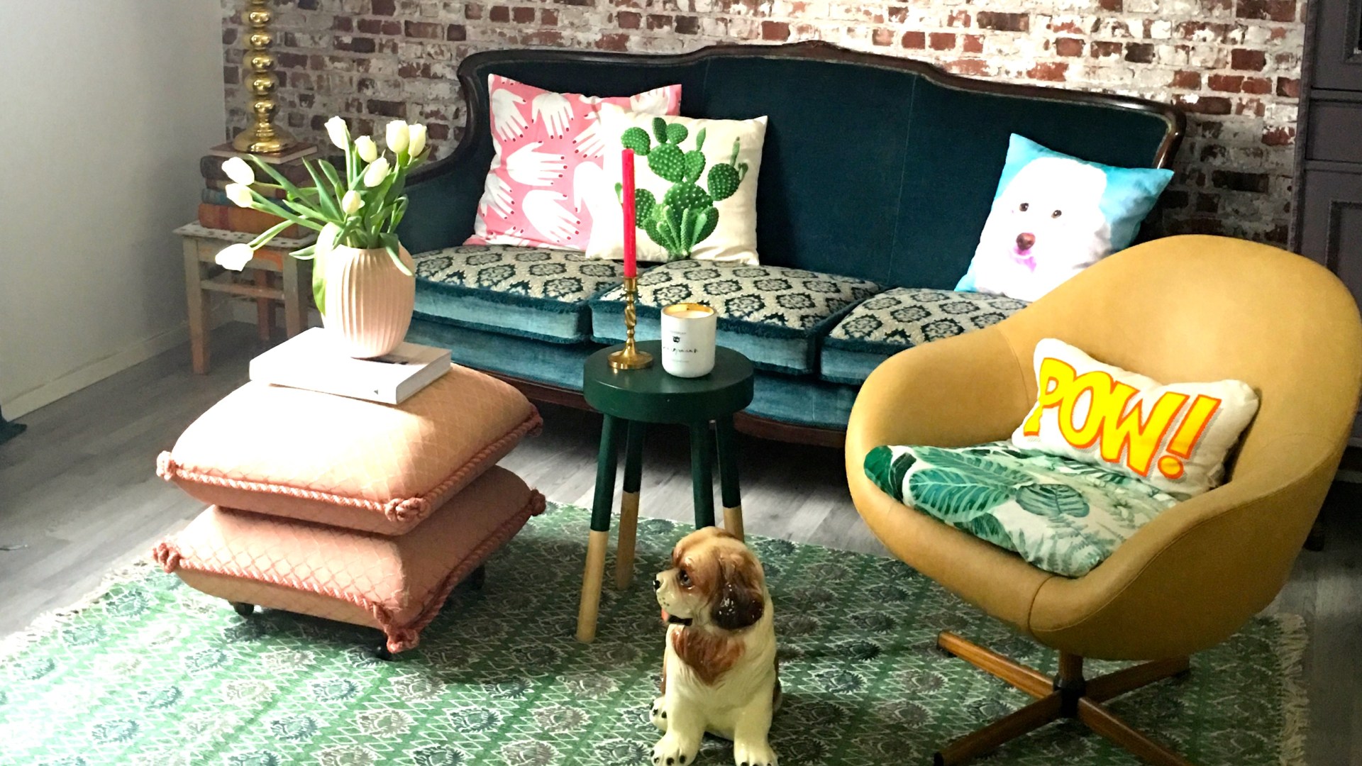 Snakk om ellevill stue?! Nesten alt her er kjøpt brukt, Maria er nemlig stamkunde på Gjenbrukshallen på Hamar… Både stylist Tone, fotograf Yvonne og jeg var altså så imponert over hva Maria har fått til med nesten ingen penger!