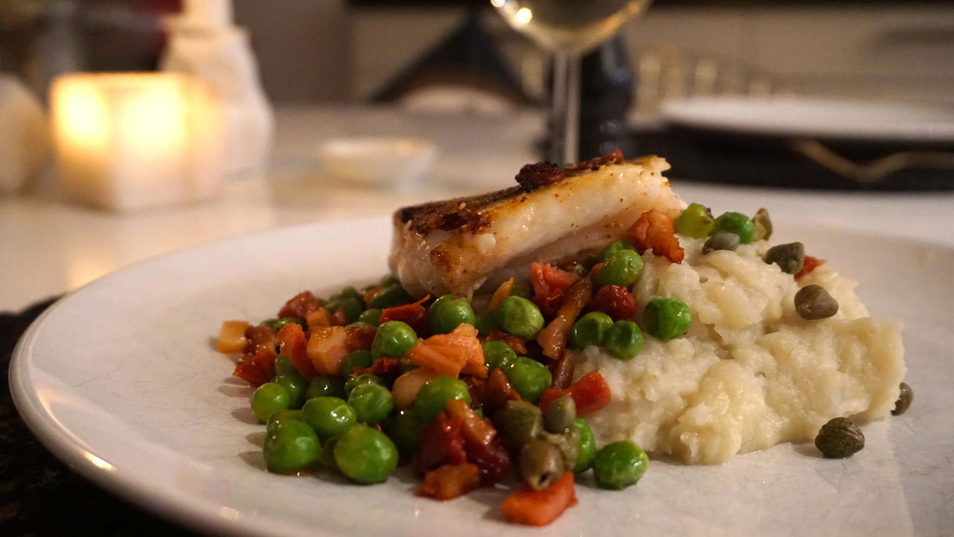 6 svar til “Skrei med jordskokkpuré, bacon og grønne erter”
