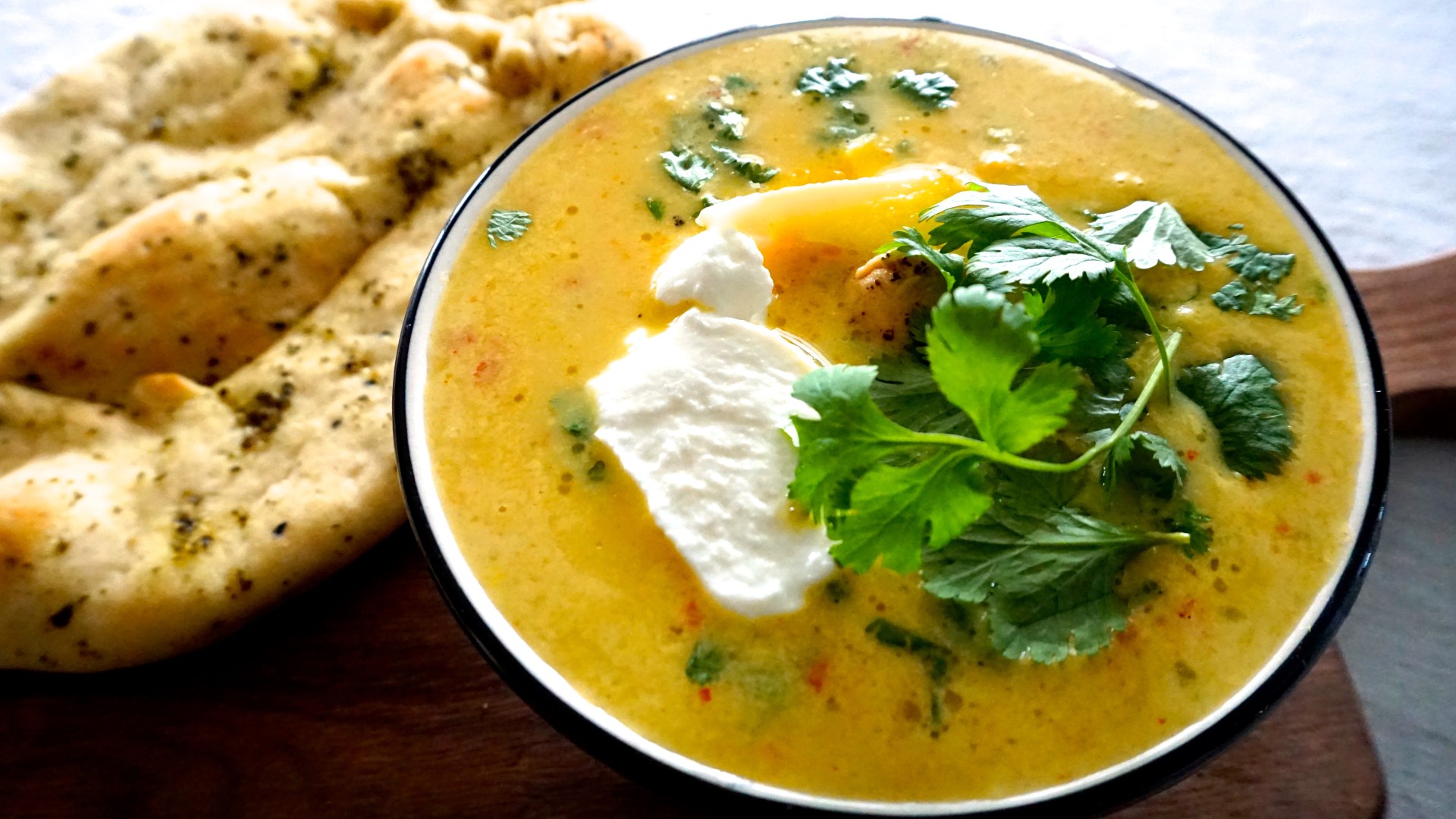 Du kan gjøre suppen mer mettende ved å tilsette basmatiris. Server gjerne med varmt nanbrød.