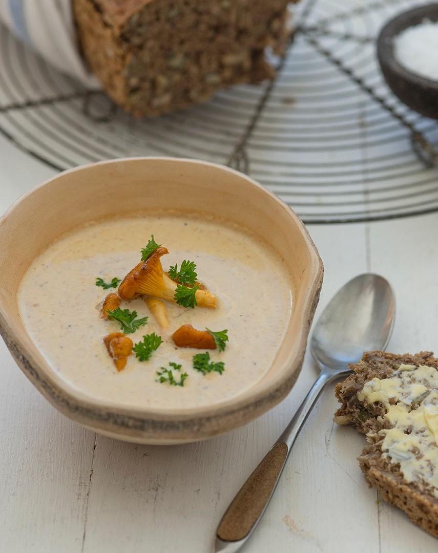 Jeg elsker sopp, både å plukke den og å spise den! Fortsatt kan du plukke traktkantareller i skogen, selv om frosten har kommet de fleste steder. Denne deilige oppskriften på god, gammeldags skogsoppsuppe kommer garantert til å både glede og imponere gjestene dine. Både bildet og oppskriften er hentet fra den vakre boka Vintage livsstil (Cappelen Damm).