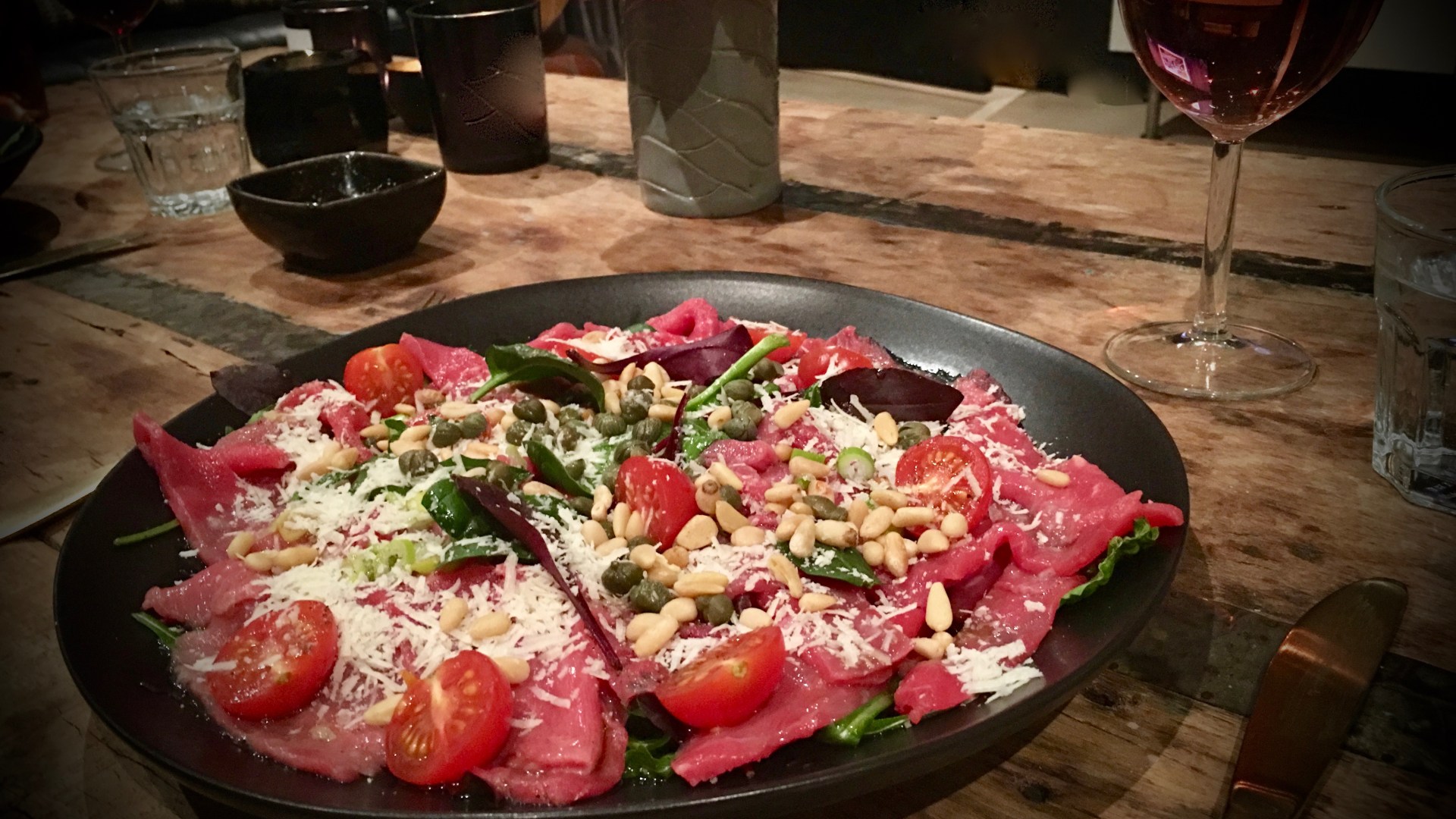 Jostein blir alltid like salig når carpaccioen kommer på bordet. Det er nesten flaut å få så mye skryt for en rett som er så kjapp og enkel å lage… Denne retten krever ikke stekeovn eller kokeplate og kan lages hvor som helst (for eksempel i båt eller hytte, jeg bare nevner det). Du kan bruke både kalv og okse, og ytrefilet fungerer også supert.