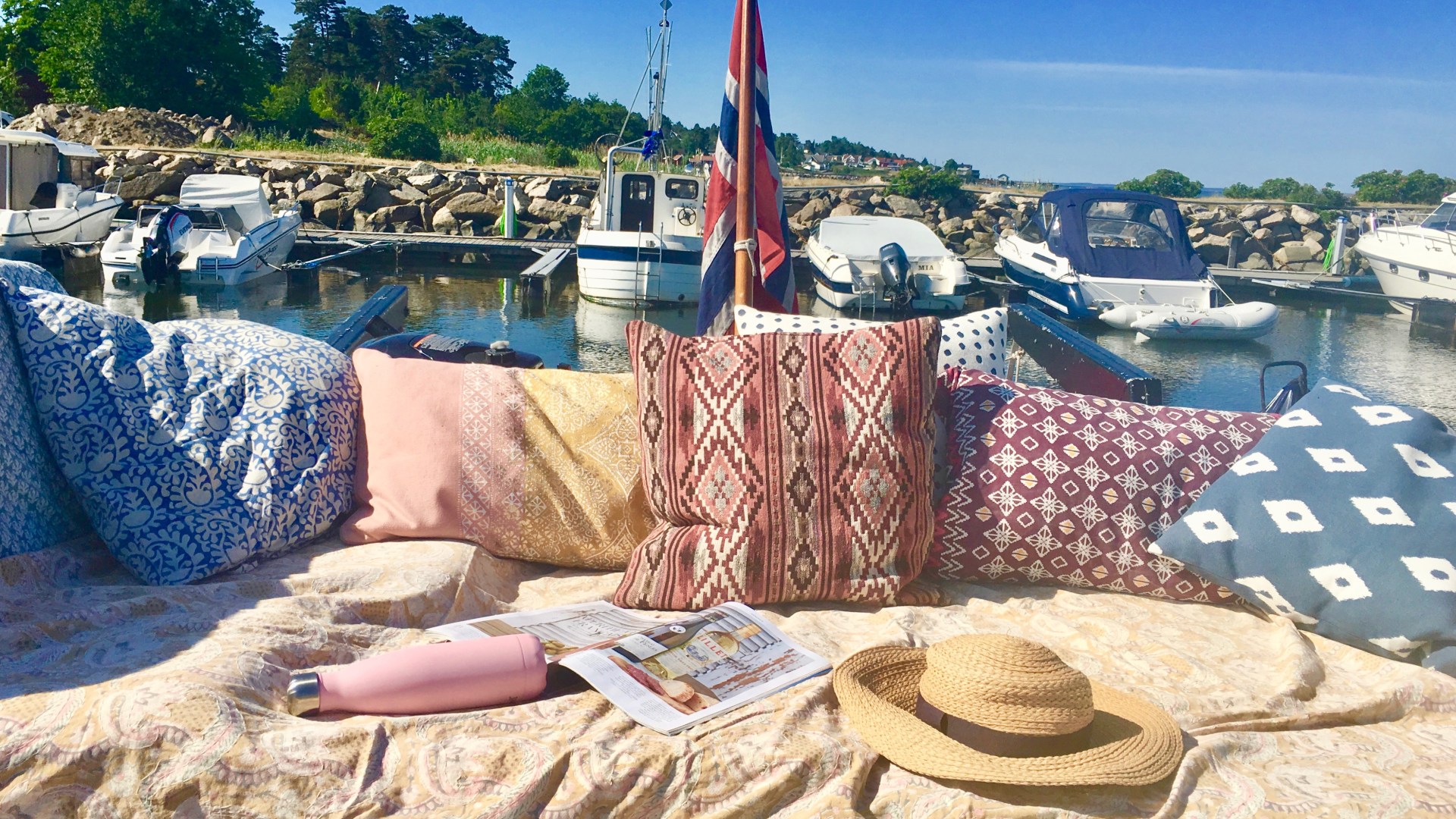 Det som ofte slår meg, i tillegg til at det selvfølgelig finnes utrolig mange fine båter, er at alle innreder dem veldig likt! Uansett prisklasse og størrelse på skuta virker det som om alle har handlet i den samme butikken. For hvorfor har alle blå puter med anker eller blårøde stjerner? Hvorfor har alle Lexington-inspirerte pledd og de samme plasttallerknene med båtmotiv? De samme klappstolene?