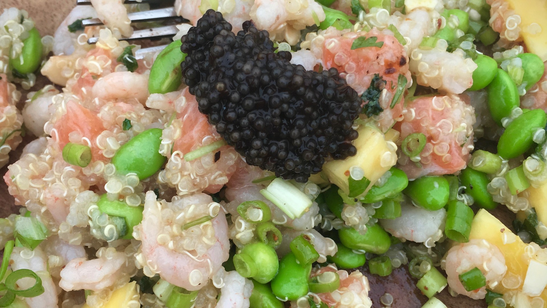 Poke blir jeg aldri lei av. Det er en fantastisk rett å vende tilbake til når man har litt dårlig tid. Strengt tatt trenger ingenting varmebehandling, quinoaen kan du godt bruke rester til, eller droppe. Du kan også bruke ris som karbokilde til denne. Uansett tar det kortere tid enn å varme en grandis. Nevnte jeg at det er helt utmerket båtmat?