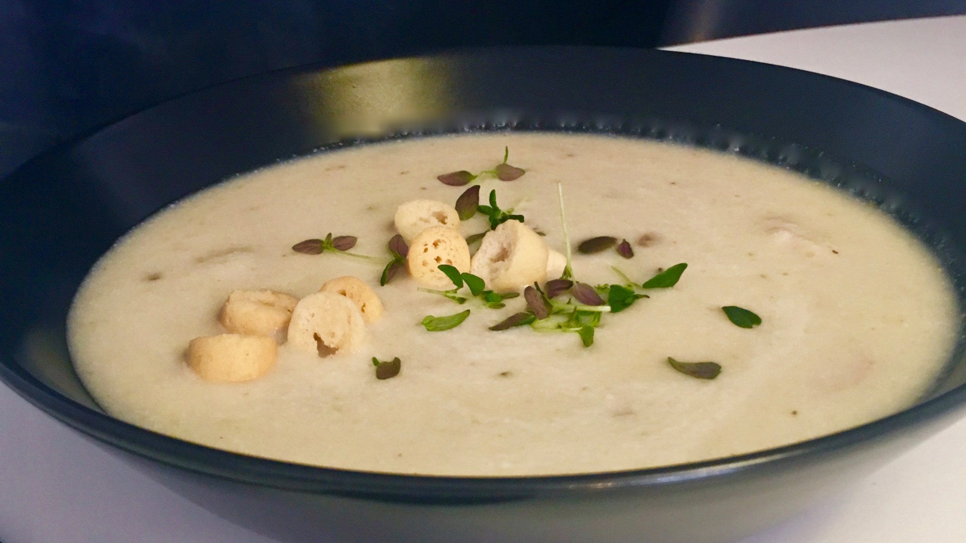 En hverdagsgjenganger vi aldri blir lei av! Det er deilig med varm suppe når det er så kaldt ute, og denne er ferdig på få strakser og blir alltid like god – og sunn! Tilsett kylling, kamskjell, laksebiter, sprøstekt bacon, pølse eller det du måtte ha lyst på om du vil ha en mer mettende suppe og mer smak. Jeg serverte den med hvitløkskrutonger denne gangen.