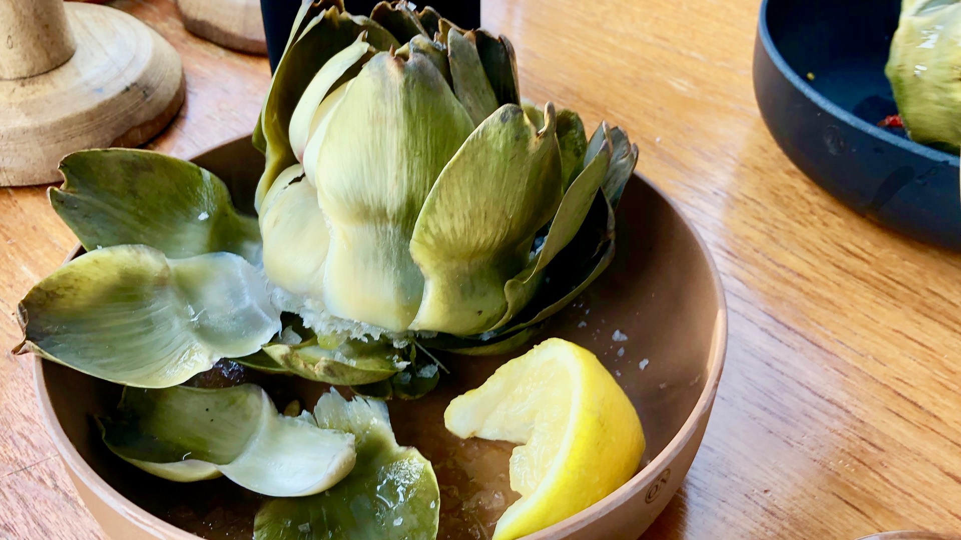 Jeg blir salig når de har artisjokk i grønnsaksdisken. Da vet jeg hvilken nytelse som venter oss – og jeg har så mange gode minner fra akkurat denne superenkle, nydelige retten. Som den første gangen jeg fikk det servert, en sen sommerkveld i Frankrike da kompis Gunnar lærte meg hvordan det hele skal gjøres: plukk av bladene, dypp i vinaigrette og salt og skrap ut kjøttet fra den nederste delen av bladet med tennene. Spis deg inn til selve indrefileten: artisjokkhjertet.